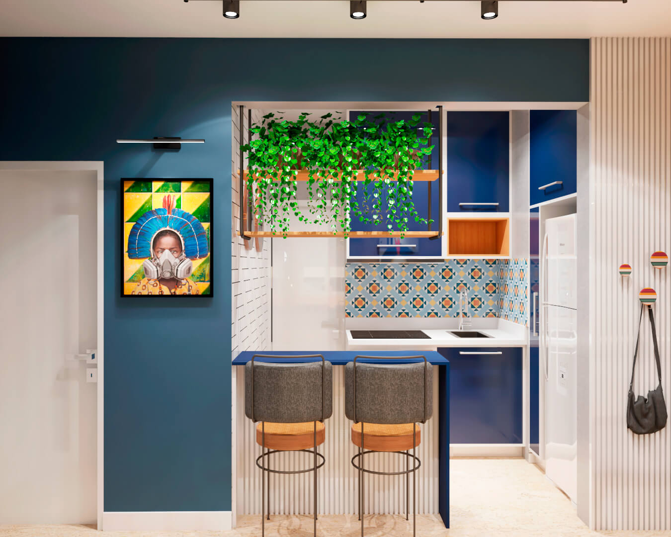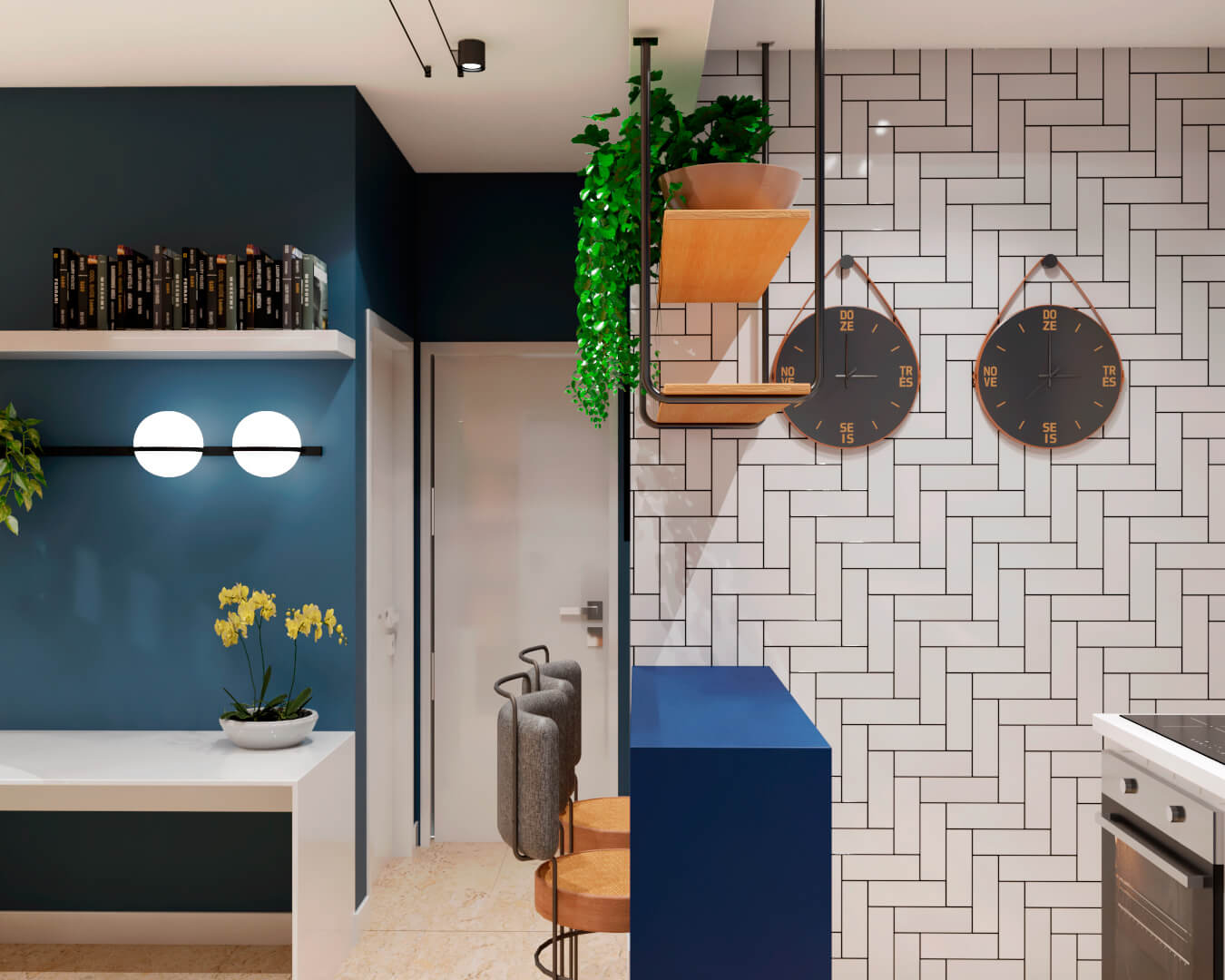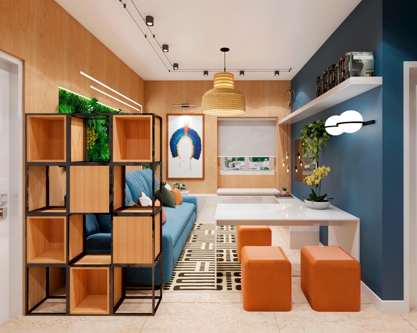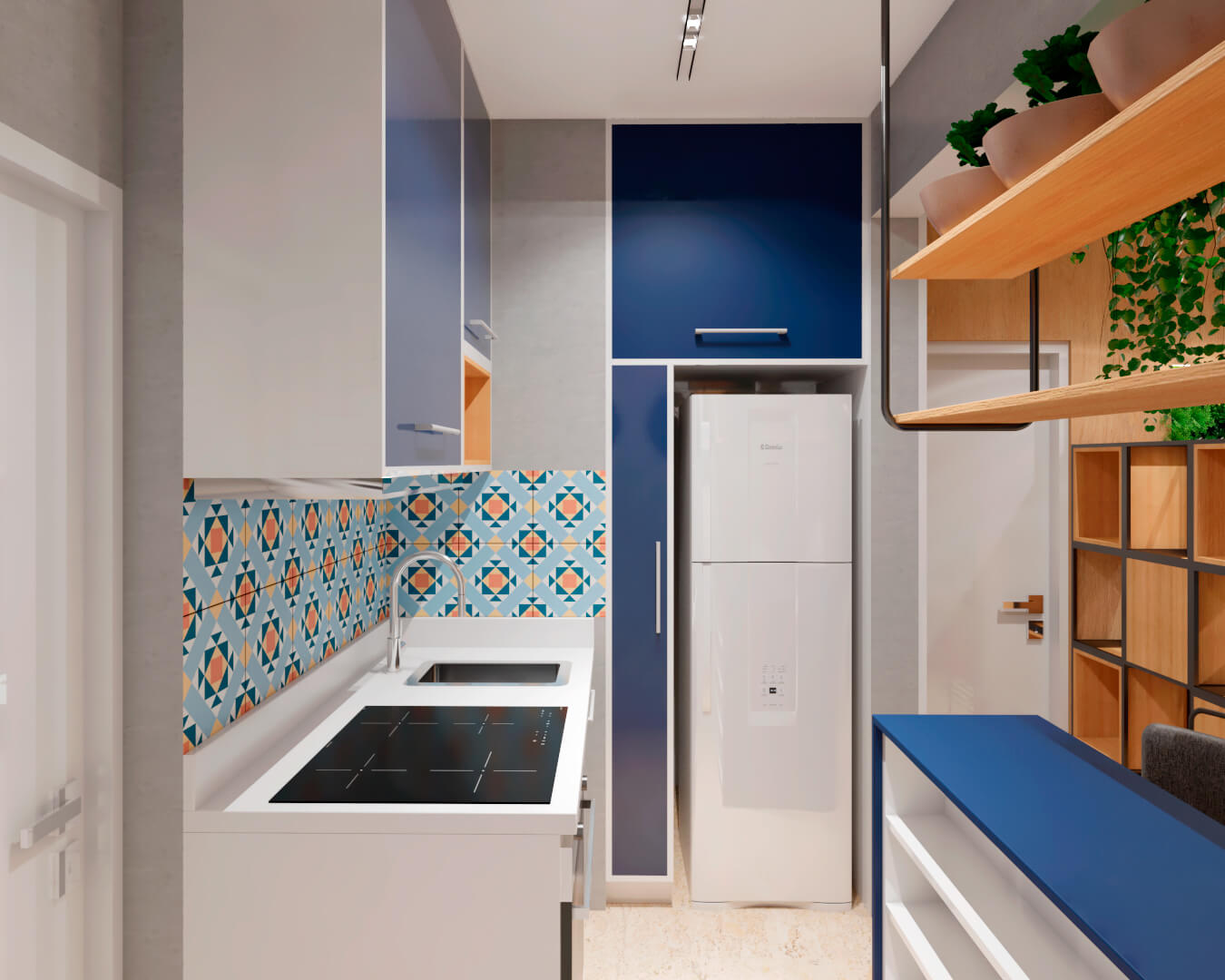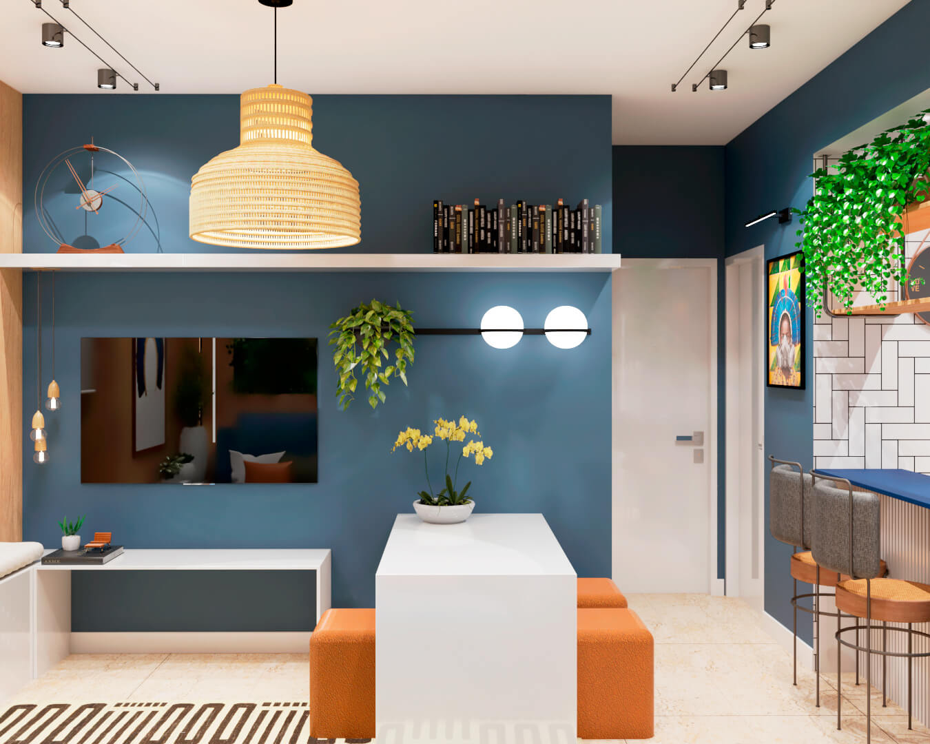 Um apartamento T2 de 40m² meticulosamente planejado, apresentando mobiliário sob medida e um design que harmoniza de maneira inteligente funcionalidade e estilo.