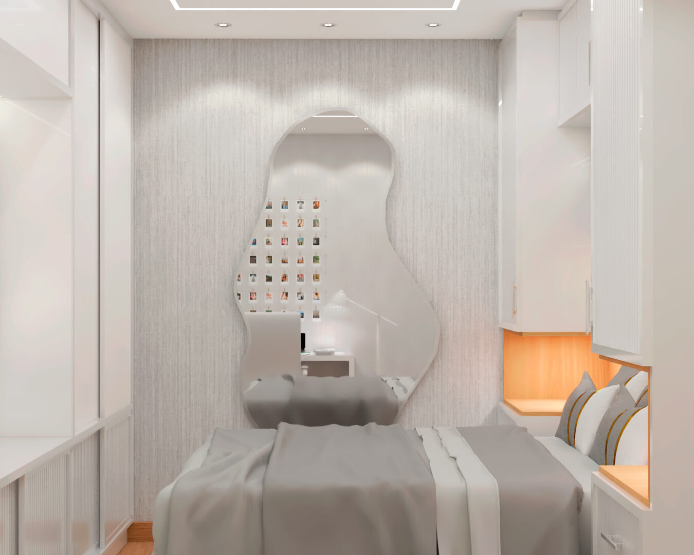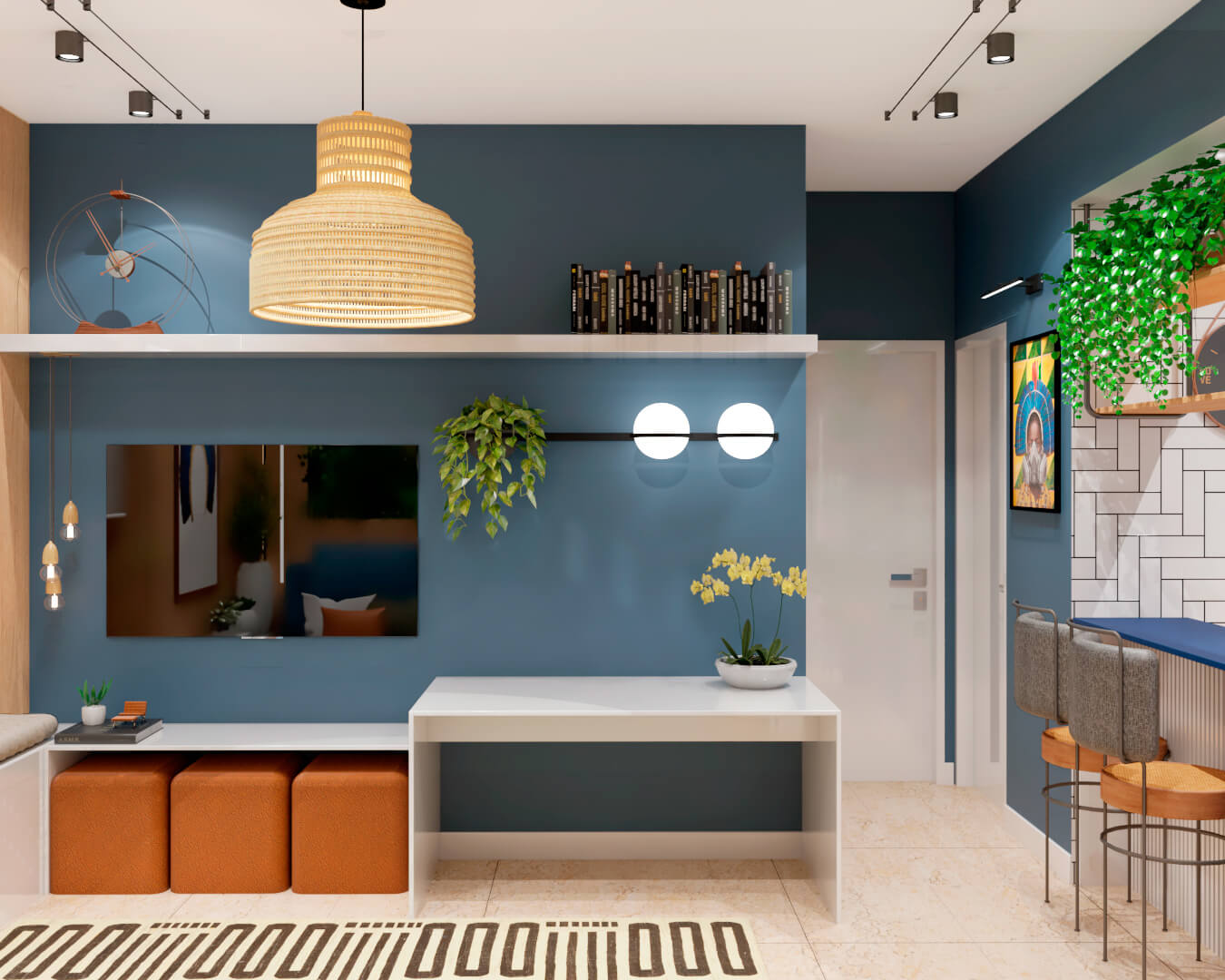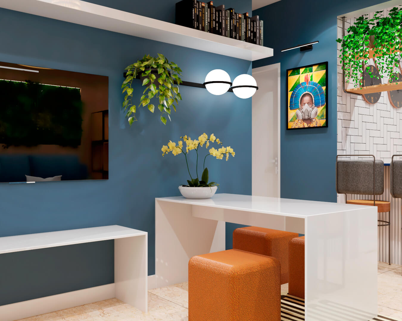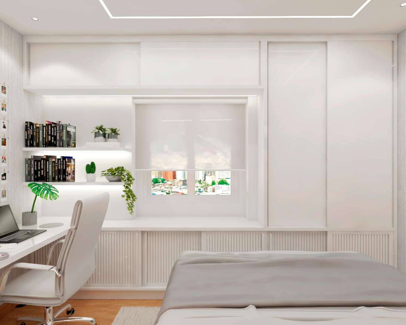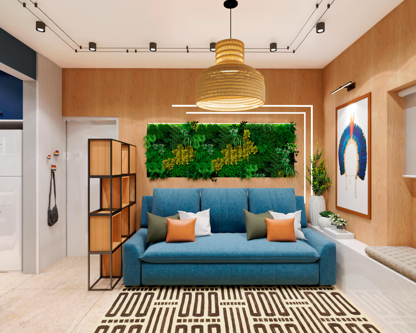 Um apartamento T2 de 40m² meticulosamente planejado, apresentando mobiliário sob medida e um design que harmoniza de maneira inteligente funcionalidade e estilo.