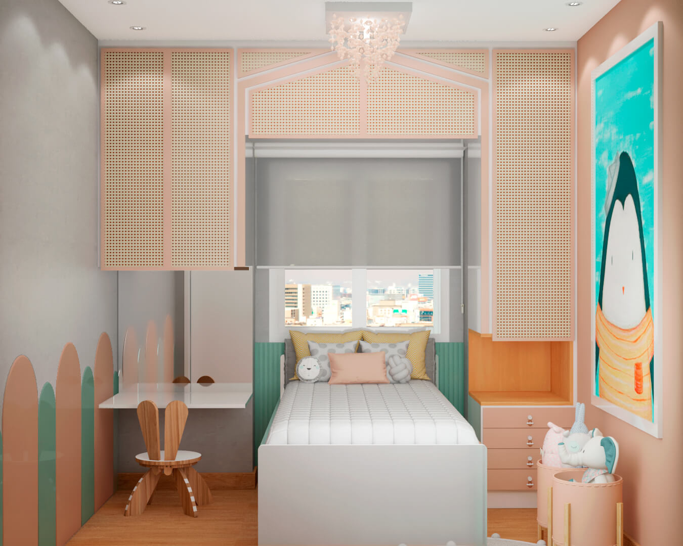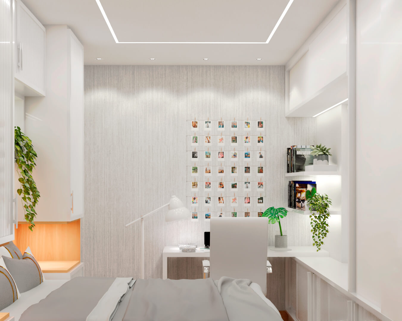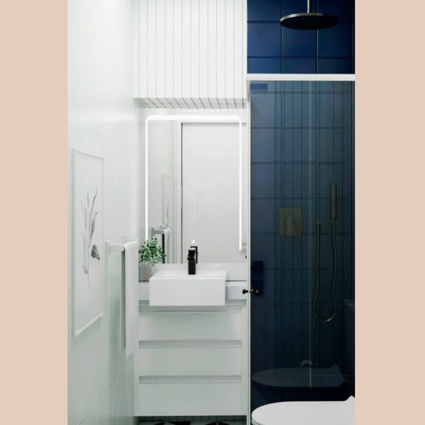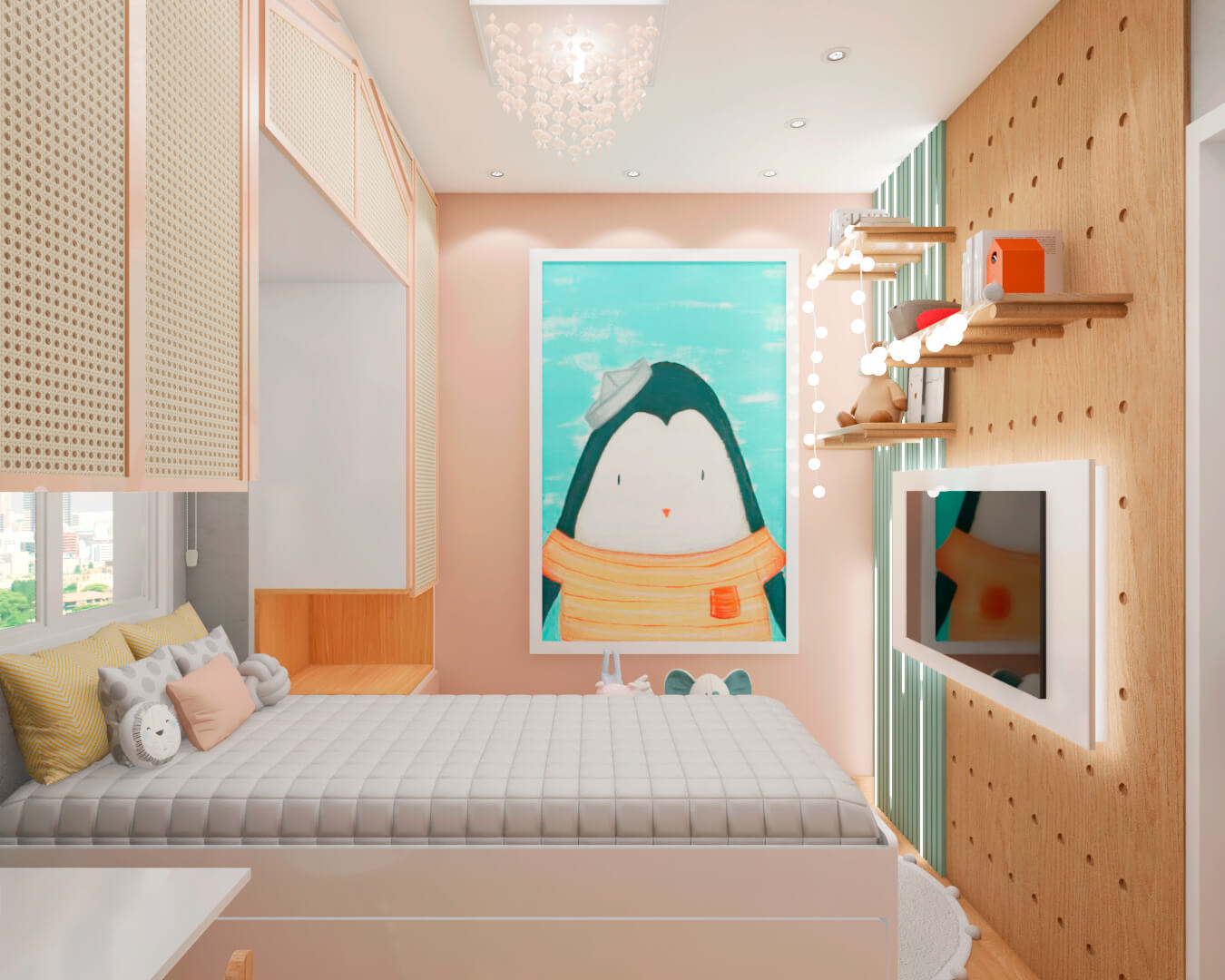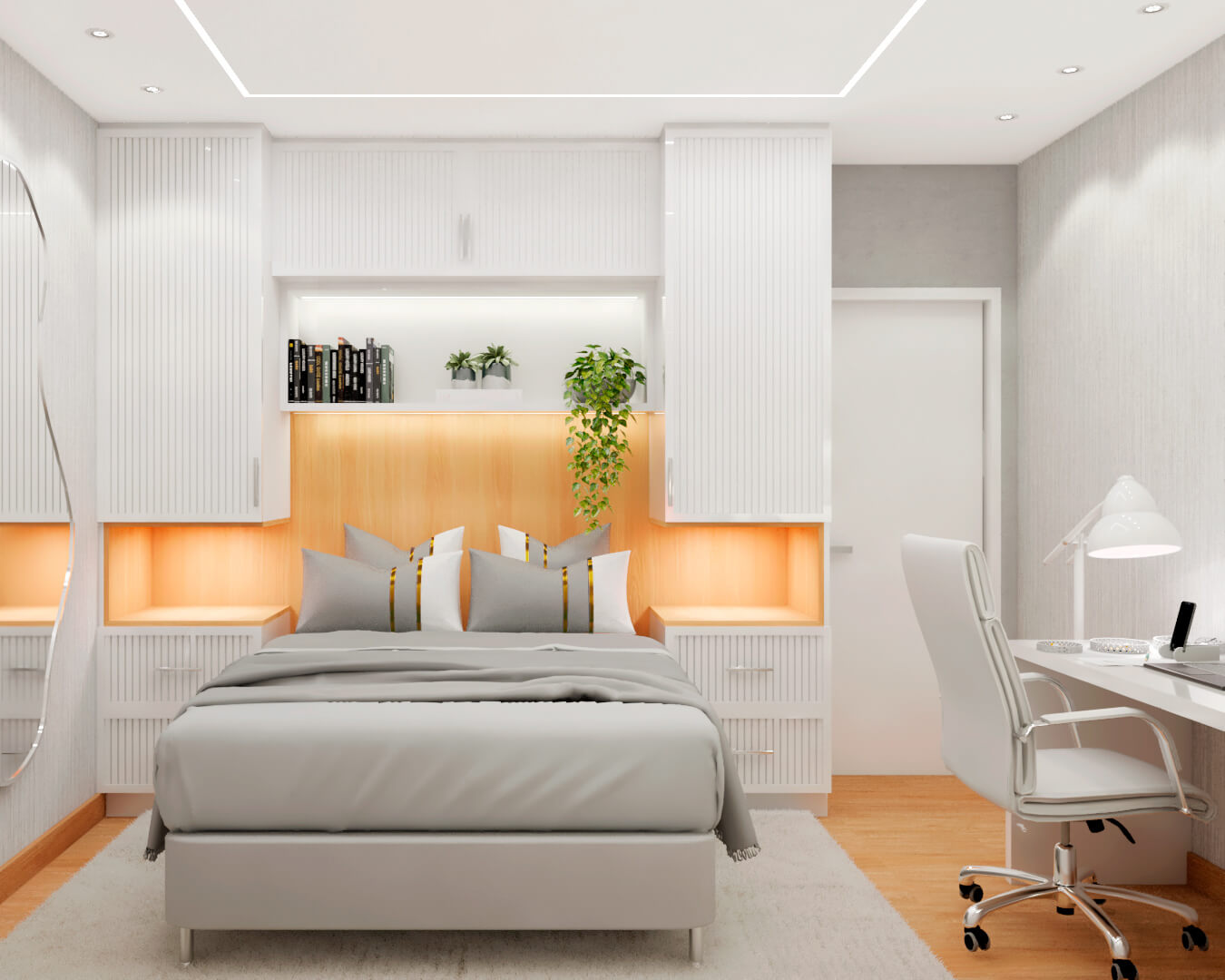 Um apartamento T2 de 40m² meticulosamente planejado, apresentando mobiliário sob medida e um design que harmoniza de maneira inteligente funcionalidade e estilo.